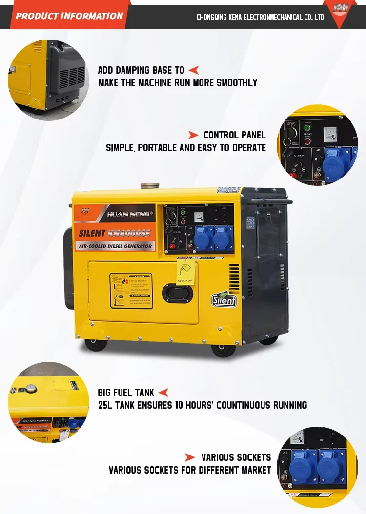 Kena’s factory focus gives strong build quality at a good price. Each generator is tested before leaving the factory to ensure reliable start up and steady output. Whether you need a small backup unit or a more powerful worksite generator, the Kena hot sale line gives you a quiet, easy to move, electric start diesel generator you can count on. Choose the size that fits your needs and enjoy dependable power with less noise and more convenience
