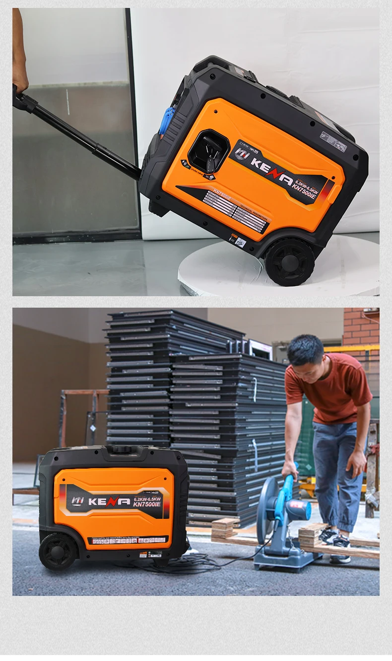 Kena Taşınabilir 6,2kW/6,5kW Sessiz Benzinli İnverter Jeneratör, evde, karavanlarda ve açık havada kullanım için güvenilir ve pratik bir güç çözümüdür. Bu jeneratör güçlü performansı sessiz çalışma ile birleştirerek genellikle benzinli jeneratörlerle ilişkilendirilen gürültüyü istemeyenler için idealdir