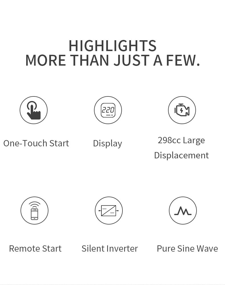 Bu jeneratör, normal bir konuşma seviyesi kadar olan yalnızca 60 desibelde çalışacak şekilde tasarlanmıştır. Bu sessiz çalışma özelliği, kamp alanları, konut bölgeleri veya gürültülü rahatsızlıkları önlemek istediğiniz herhangi bir yer gibi gürültüye duyarlı ortamlarda kullanım için ideal hale getirir. Jeneratördeki invertör teknolojisi, akıllı telefonlar, dizüstü bilgisayarlar ve küçük cihazlar gibi hassas elektronik cihazlar için güvenli olan temiz ve dengeli bir güç sağlar.